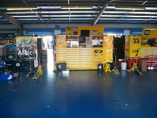 Scott won tickets from 105.5 radio station last week. It included 2 tickets for Saturdays race, 2 tickets for Sundays race, pit passes, garage passes, and the best part a lap around the race track in the official pace car. We went as fast as 120mph and it was so exciting. I cant imagine going almost 200mph like the real drivers do. This is a pic of inside the garage area.